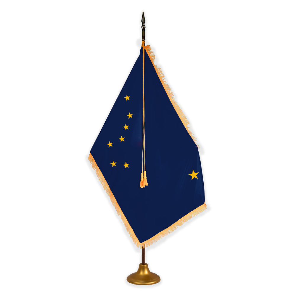 This Deluxe Alaska State Flag Set is a stunning representation of the Last Frontier, ideal for any indoor setting where you want to honor its history and heritage with dignity and pride.
