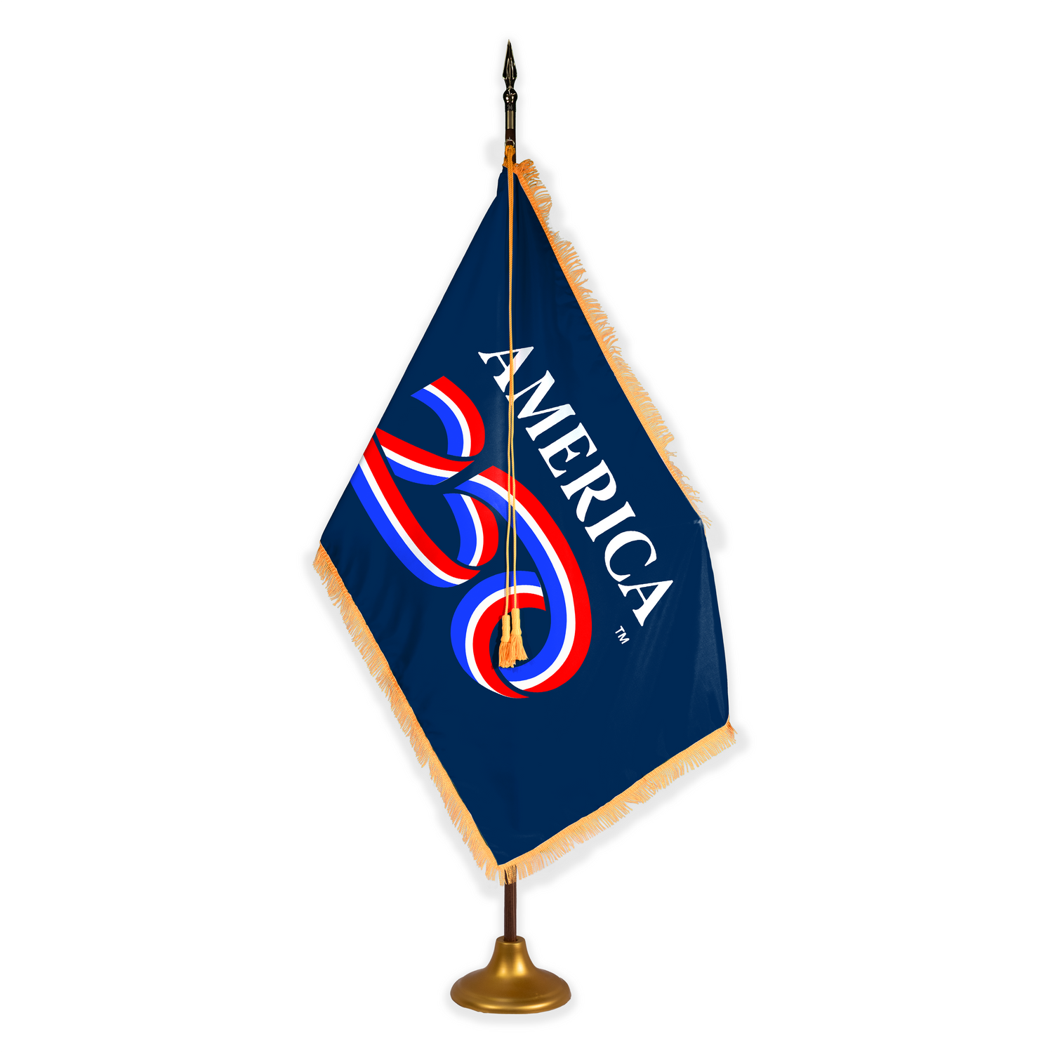 - Your choice of bold blue or crisp white 3' x 5' Official America250™ Nylon Indoor Fringed Flag