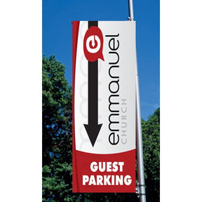 - Banners are finished with 2.5" diameter pole sleeve on top and bottom