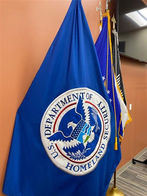 DHS Embroidered Indoor Flag Set - 3x5 / Gold Metal / 7’ is backordered and will ship as soon as it is back in stock.