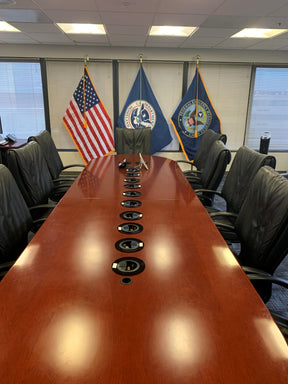 The FEMA Flag is a printed double sided flag (reads correct on both sides). It is finished with a sleeve that will fit up to a 1.5” diameter pole and gold fringe. The specifications for this flag and flag set have been approved by FEMA and their regulations.