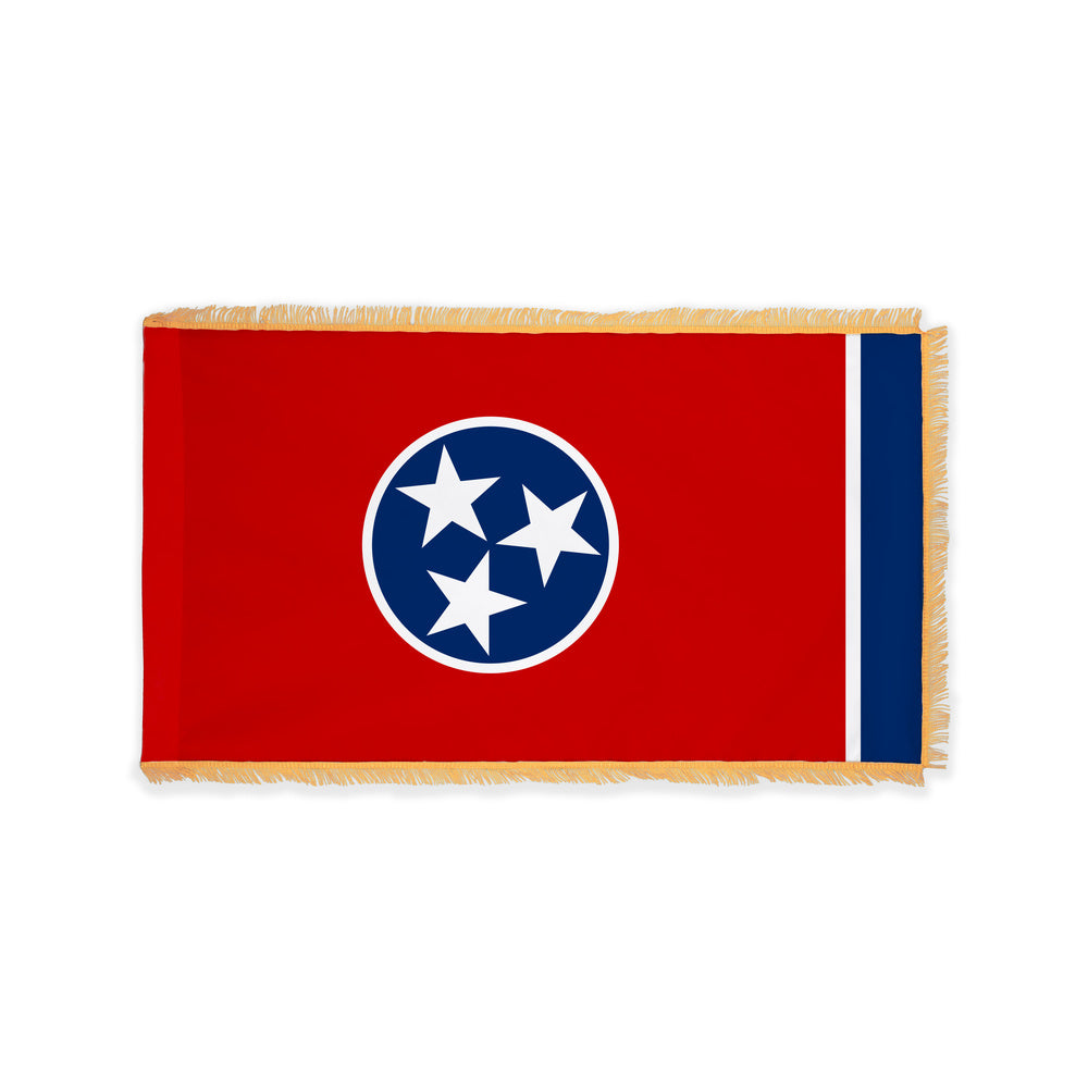 Celebrate Tennessee’s heritage with the official Tennessee State Flag, finished with ceremonial gold fringe for distinguished indoor display.
